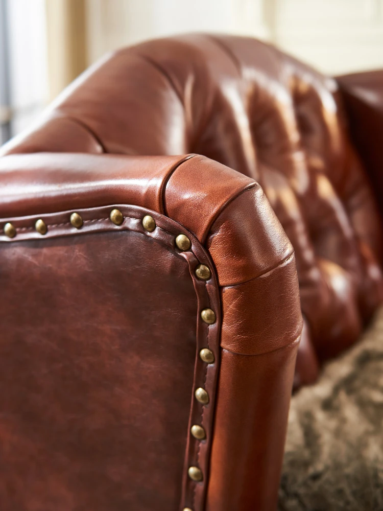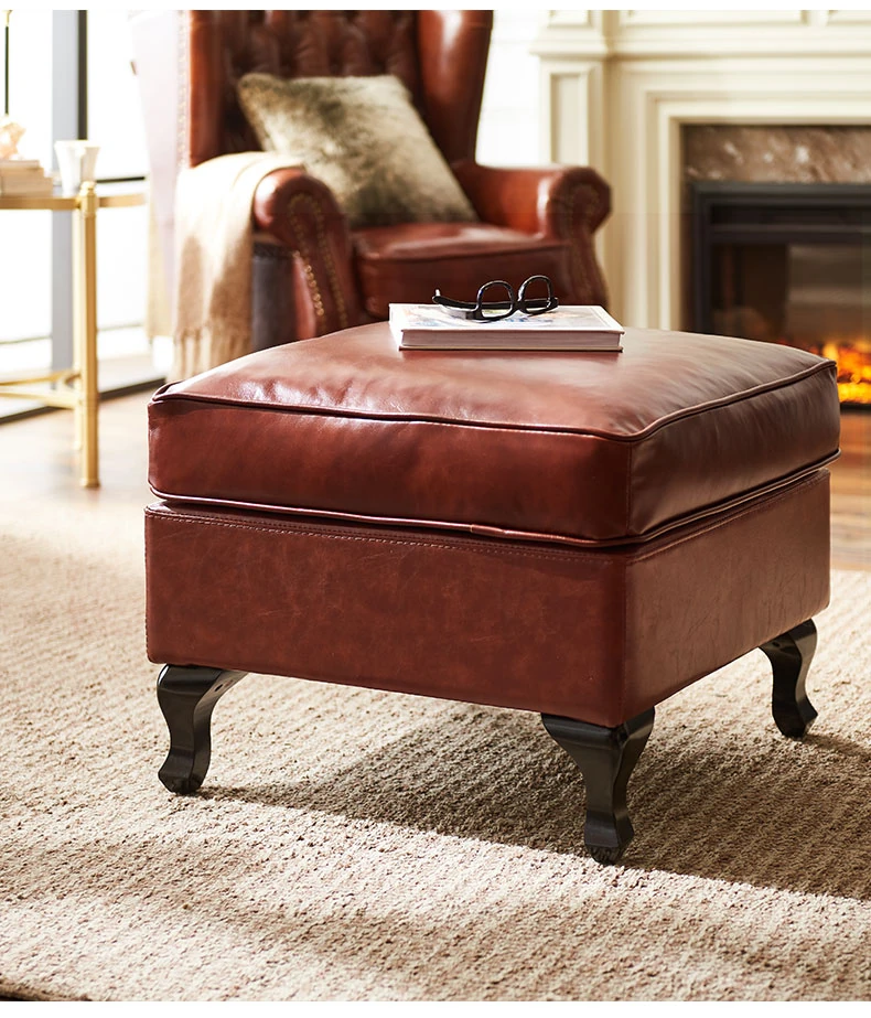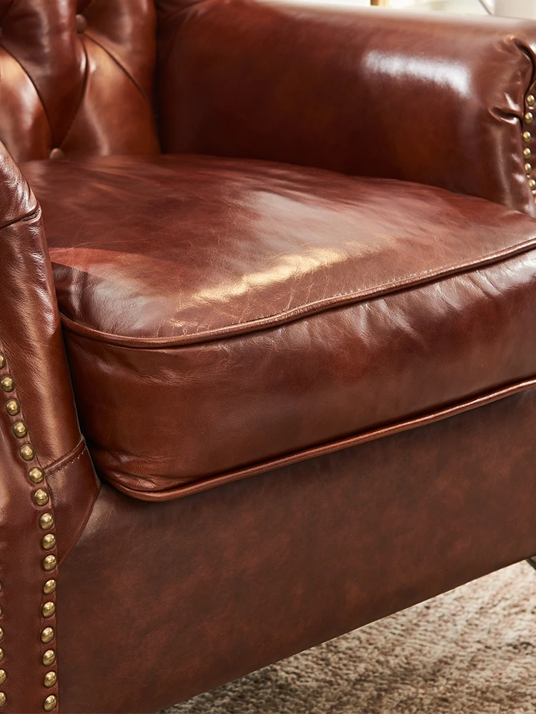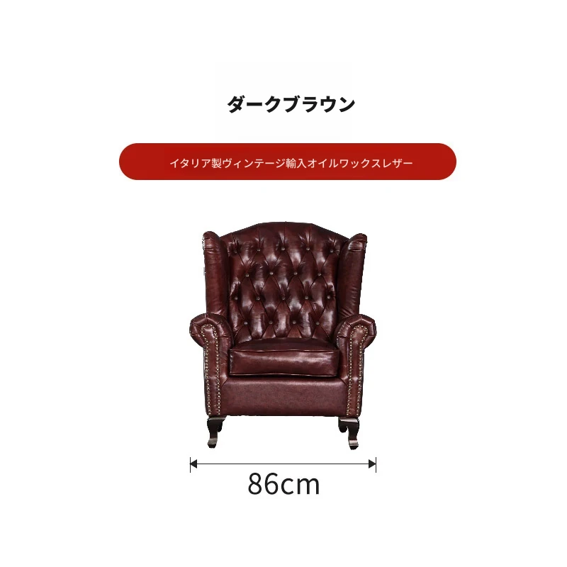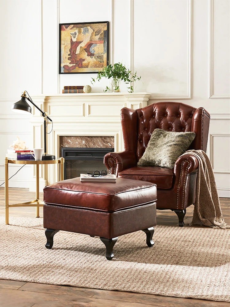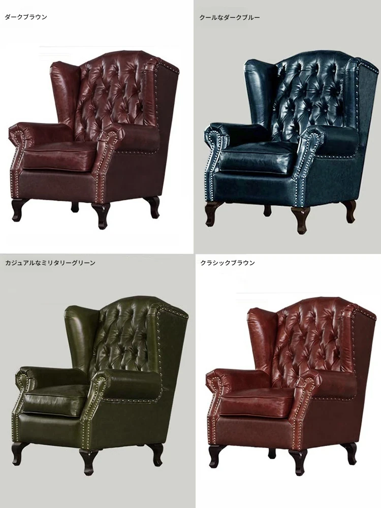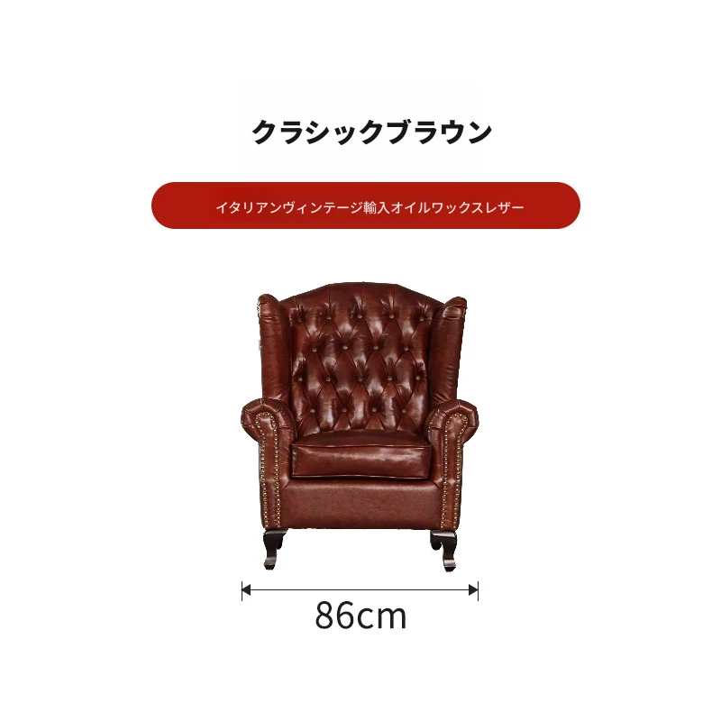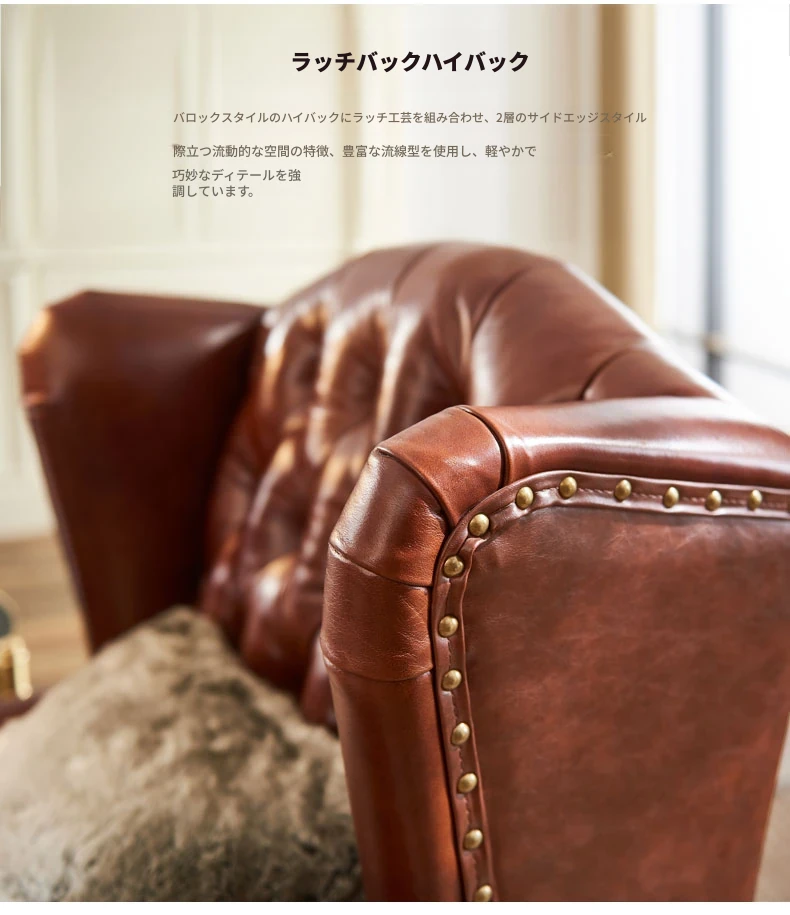 意舍 アメリカンカントリースタイル タイガーチェア&オットマン セット 本革製 シングルチェア リビング用 ヴィンテージ風 ソファチェア