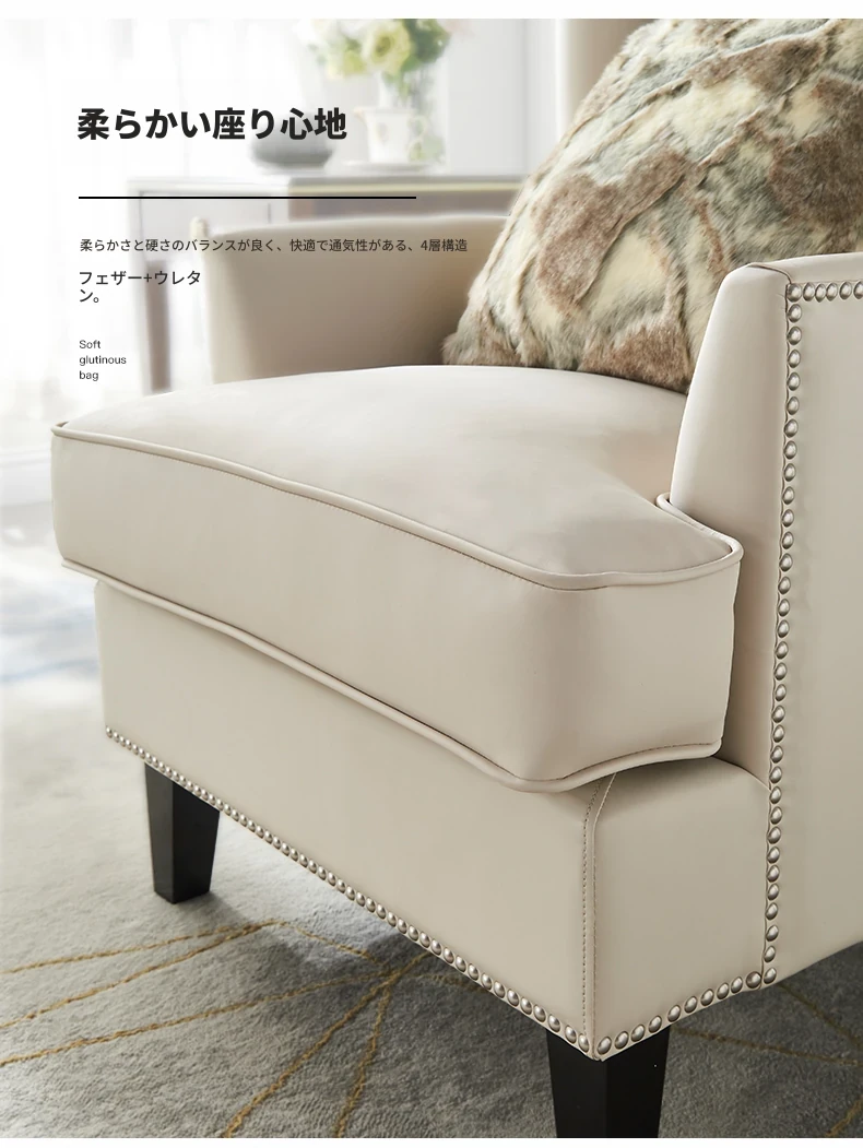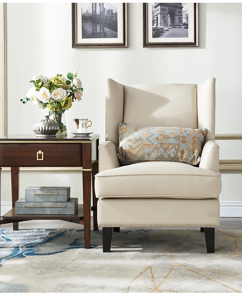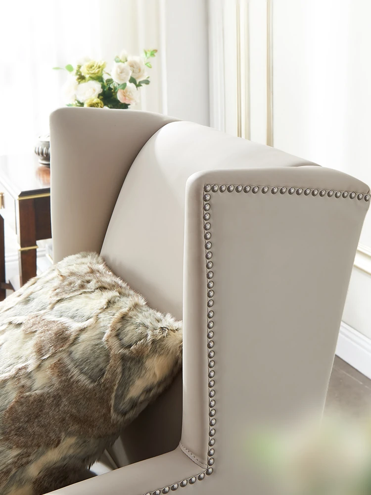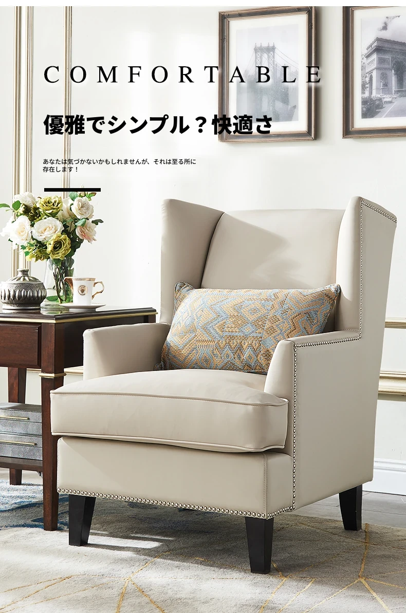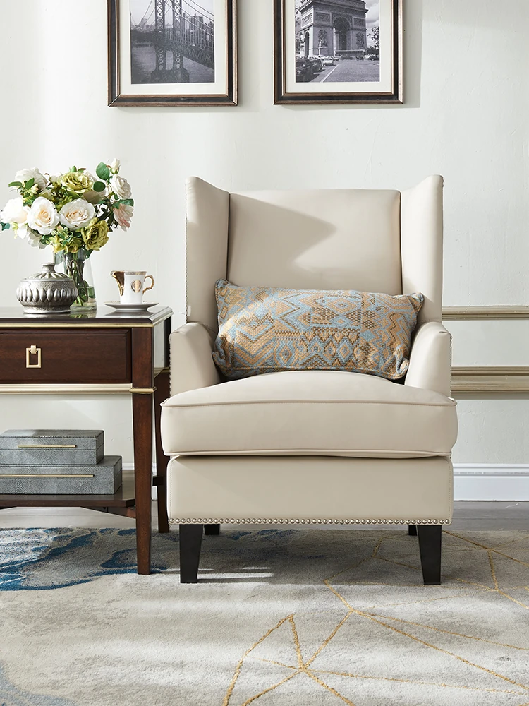 意舍のアメリカンスタイル軽奢虎椅!ナパ本革使用のバルコニー・リビング向けシンプルデザインの一人掛けソファ。リラックスできる優雅なひとときをお楽しみください。