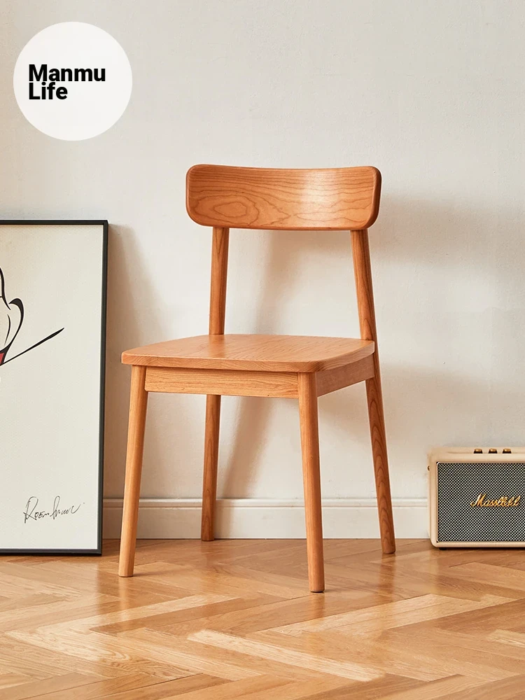 Mamu Life Scandinavian Solid Wood Dining Chair - Elegant Oak Backrest, Perfect for Small Spaces - Versatile Cherry Wood Desk Chair in Nordic-Japanese Style