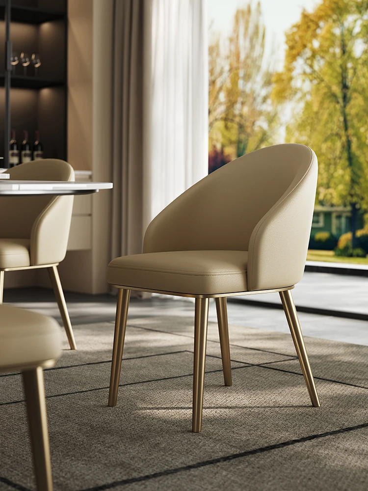 Luxury Genuine Leather Dining Chair - Italian High-End Modern Design with Soft Backrest, Perfect for Elegant Restaurants and Reception Areas, Crafted from Top-Grain Cowhide.